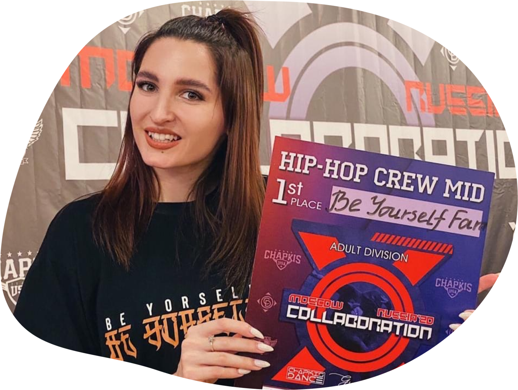 Победитель международных танцевальных конкурсов по hip-hop в составе команды "Be Yourself"